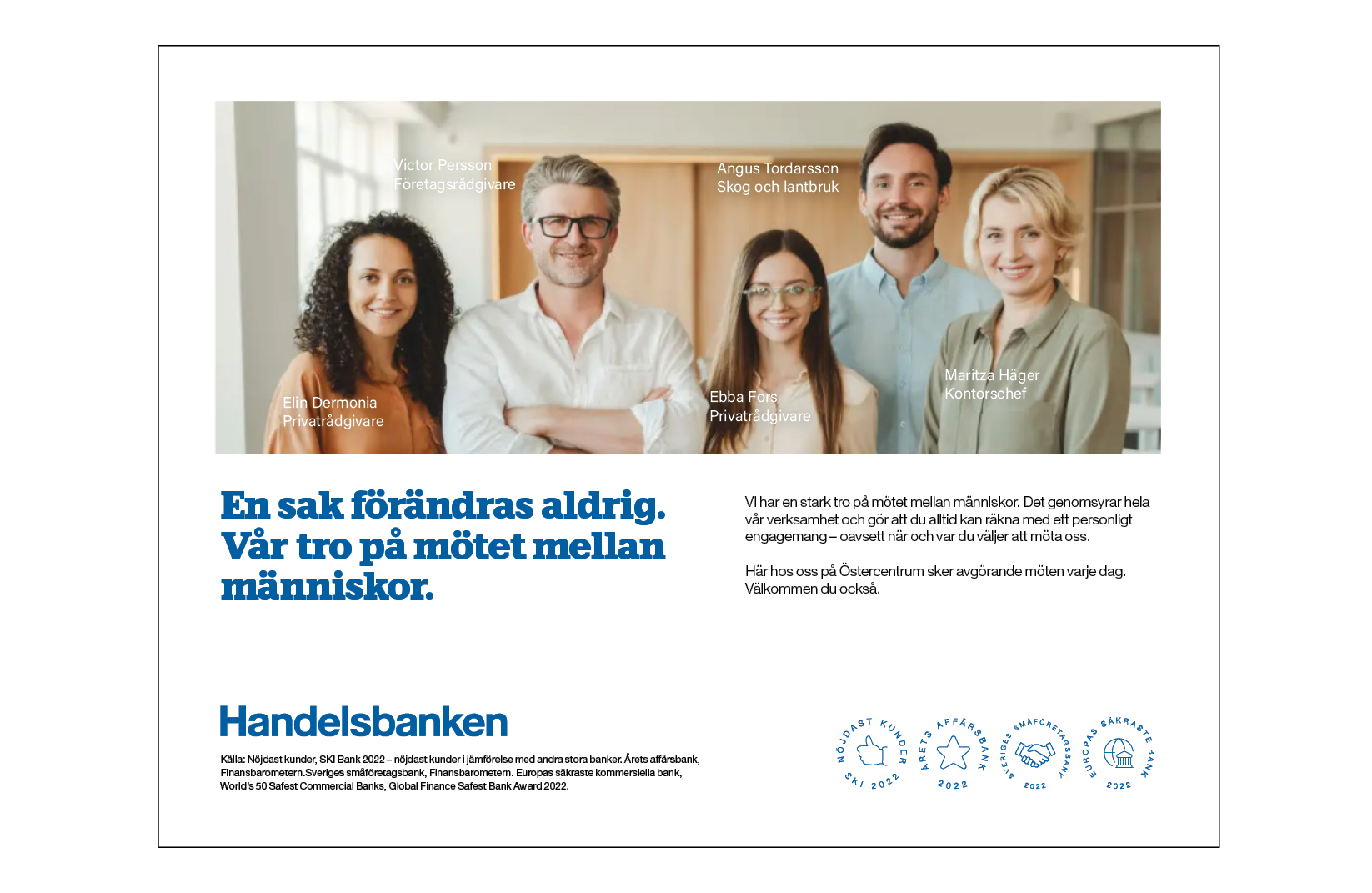 The challenge was to develop advertising materials that not only reflected the local context and resonated with the community but also adhered to Handelsbanken's stringent brand guidelines. These materials had to be adaptable, enabling branches to customize them for specific events, promotions, or informational campaigns, while maintaining brand consistency.
